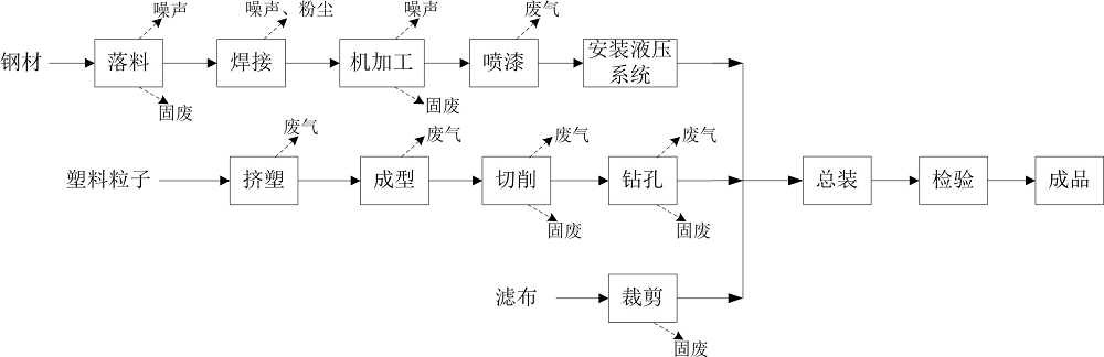 浙江嘉興過濾設(shè)備廠廢氣治理項(xiàng)目情況:噴漆設(shè)備一套、車床 6 臺(tái)、塑料板銑板機(jī) 2 臺(tái)、擠出機(jī) 6 臺(tái)、電焊機(jī) 5 臺(tái)、有油壓機(jī) 3 臺(tái)、搖臂鉆 2 臺(tái)、剪板機(jī)(數(shù)控)1 臺(tái)、氣割機(jī) 1 臺(tái)、龍刨 2 臺(tái)、龍門銑 2 臺(tái)、鏜床 1 臺(tái)、行車 9 臺(tái)及其他輔 助設(shè)備 30 臺(tái)等設(shè)備,形成年產(chǎn) 1800 臺(tái)壓濾機(jī)的生產(chǎn)能力。