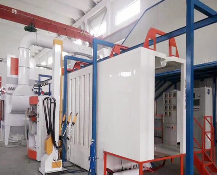 (4)烘烤:靜電噴涂過(guò)后,將工件推入烤房?jī)?nèi),烤房為天然氣加熱。天然氣加熱烤房將燃燒機(jī)燃燒天然氣產(chǎn)生的熱量以熱風(fēng)的形式輸送到烤房?jī)?nèi)進(jìn)行粉末固化(溫度約 90℃,固化時(shí)間約 15 分鐘),熱風(fēng)從烤房?jī)?nèi)底部輸送,頂部抽出后再通過(guò)燃燒機(jī)加熱后循環(huán)使用,燃燒廢氣通過(guò)烤房縫隙或工件進(jìn)出時(shí)在室內(nèi)以無(wú)組織形式排放,最終通過(guò)加強(qiáng)車間通風(fēng)排出。該過(guò)程中會(huì)產(chǎn)生天然氣燃燒廢氣。
