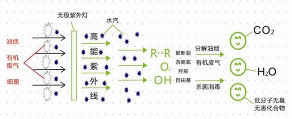 噴漆廢氣經(jīng)過(guò)水簾柜清洗后,對(duì)漆霧起到很好的清洗降解作用,廢氣進(jìn)入水噴淋廢氣處理塔,經(jīng)濕式旋流板廢氣塔進(jìn)一步清洗處理后,通過(guò)加壓引風(fēng)機(jī)進(jìn)入光催化除臭設(shè)備內(nèi),經(jīng)高能紫外線照射下,使揮發(fā)性有機(jī)物化學(xué)鍵開(kāi)環(huán)和斷裂等多種反應(yīng)(光化學(xué)反應(yīng)),降解轉(zhuǎn)變成CO2,H2O等低分子化合物,利用高能紫外光照射空氣中的氧氣生成臭氧,臭氧吸收紫外線生成氧自由基和氧氣,氧自由基與空氣中的水蒸氣作用生成羥基自由基,一種更強(qiáng)的氧化劑,與醇、醛、羧酸等有機(jī)廢氣,徹底氧化為水、二氧化碳等無(wú)機(jī)物后,進(jìn)入活性炭吸附器進(jìn)行吸附,廢氣凈化后,最終通過(guò)管道排放到大氣中達(dá)標(biāo)排放。為達(dá)到最佳凈化效果,廢氣經(jīng)光催化除臭設(shè)備分解后,后續(xù)需有3~5秒管道反應(yīng)時(shí)間。排出的低濃度有機(jī)氣體被吸附在它的活性表面上經(jīng)凈化氣體由外排風(fēng)管高空排放。