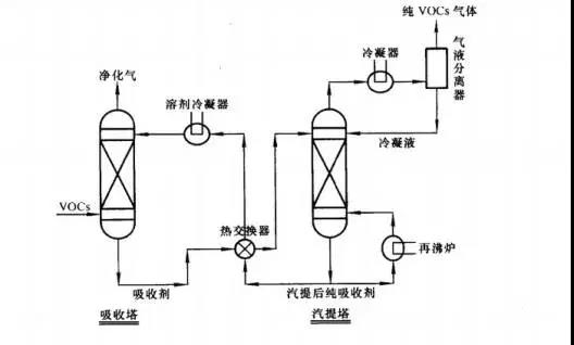 物理吸收是廢氣中一種或幾種組分溶解于選定的液體吸收劑中,這種吸收劑應(yīng)具有與吸收組分有較高的親和力,低揮發(fā)性,同時(shí)還應(yīng)具有較小的揮發(fā)性,吸收液飽和后經(jīng)加熱解吸再冷卻重新使用。