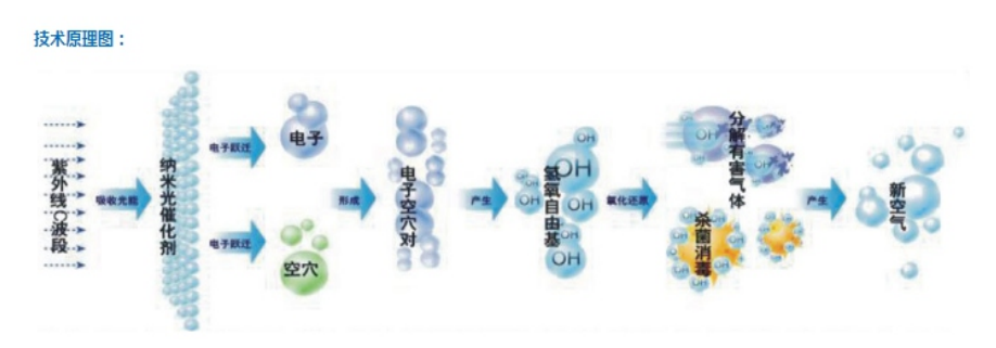 (2)利用高能高臭氧UV紫外線光束分解空氣中的氧分子產(chǎn)生游離氧,即活性氧,因游離氧所攜正負電子不平衡所以需與氧分子結合,進而產(chǎn)生臭氧。UV+02→0-O*‘活性氧2→03溴臭氧,眾所周知臭氧對有機物具有極強的化作用,對惡臭氣體及其它刺激性異味有立竿見影的清除效果。